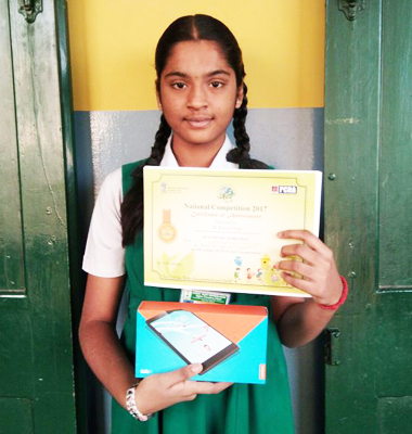 Shwetha has been awarded the certificate of achievement for excellence in Painting and for reaching the finals in the senior category of Saksham National Painting Competition 2017.