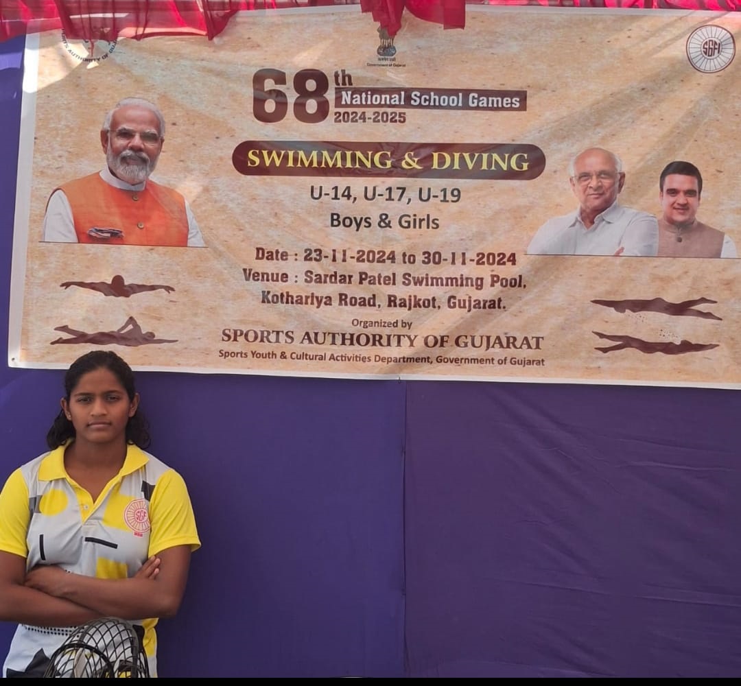 Vijayshree C of class XII B participated in the 68th National School Games Swimming and Diving Competition held at Rajkot, Gujarat for 50 mts butterfly , 100 mts butterfly and 800 mts Free Style.